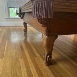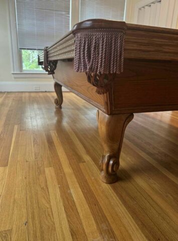 Beautiful 8ft Olhausen pool table featuring a stunning deep oak finish, elegant ram head legs, and a richly detailed frame that gives it a classic furniture-style look. Save big compared to buying new without compromising on quality!